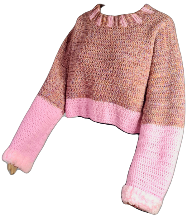 Plusieurs jours de travail à la main au crochet fil par fil d'un mélange de couleur travaillée rose clair et nude.