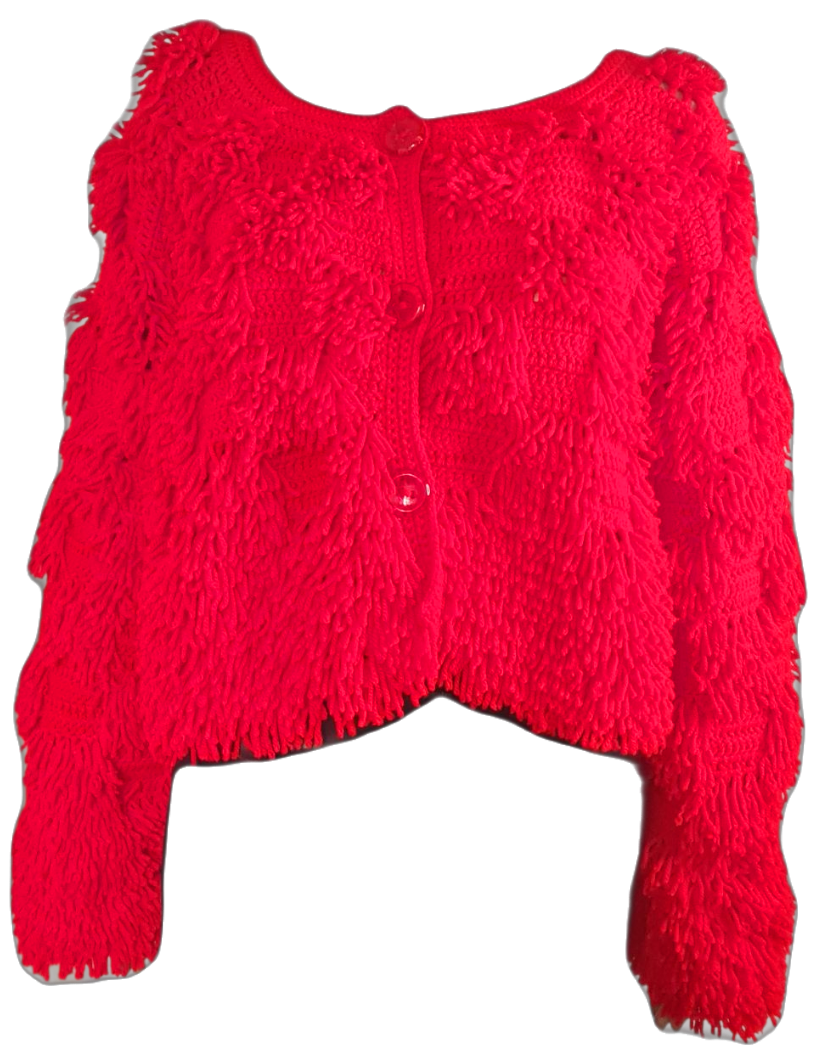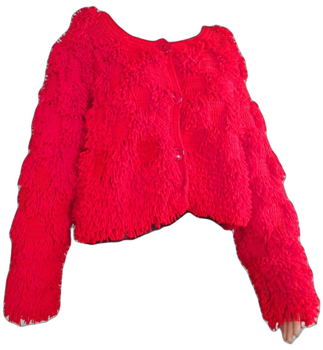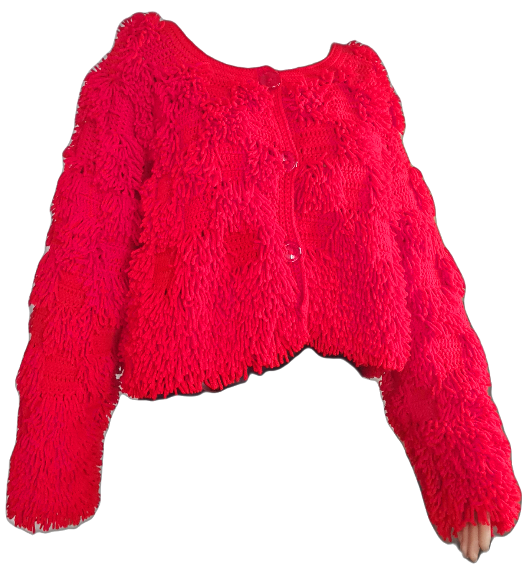 Gilet court rouge réalisé au crochet entièrement à la main et des jours de travail.