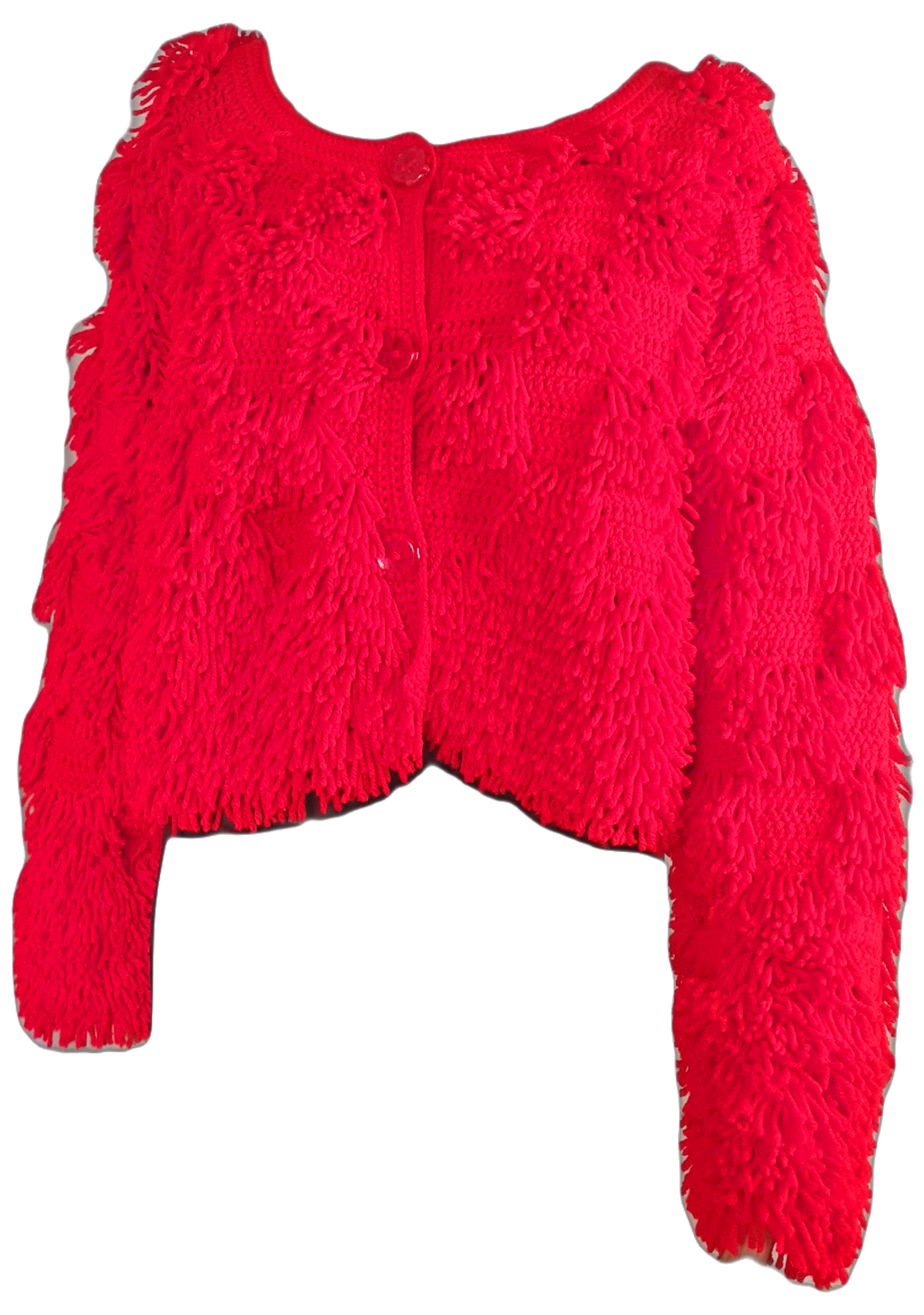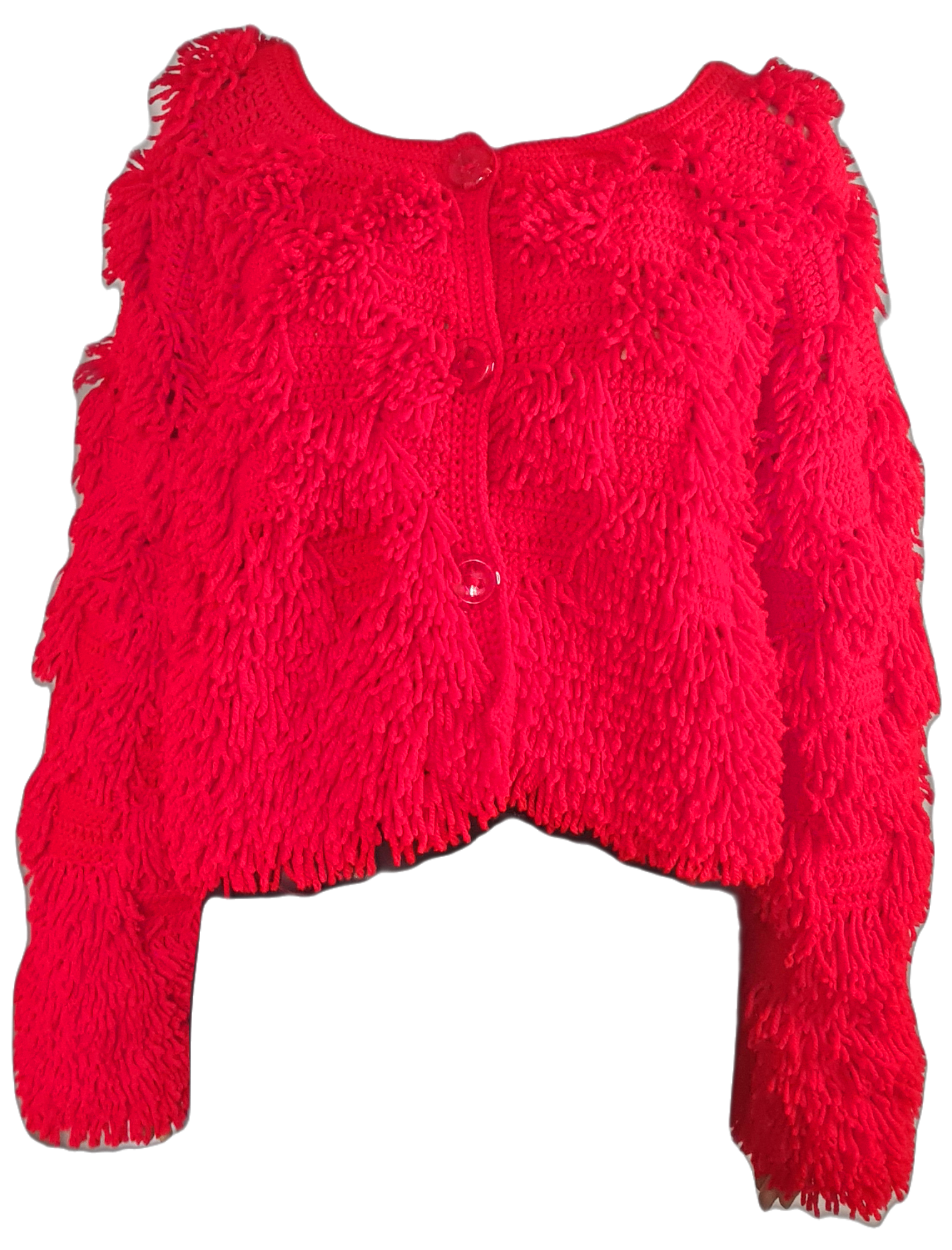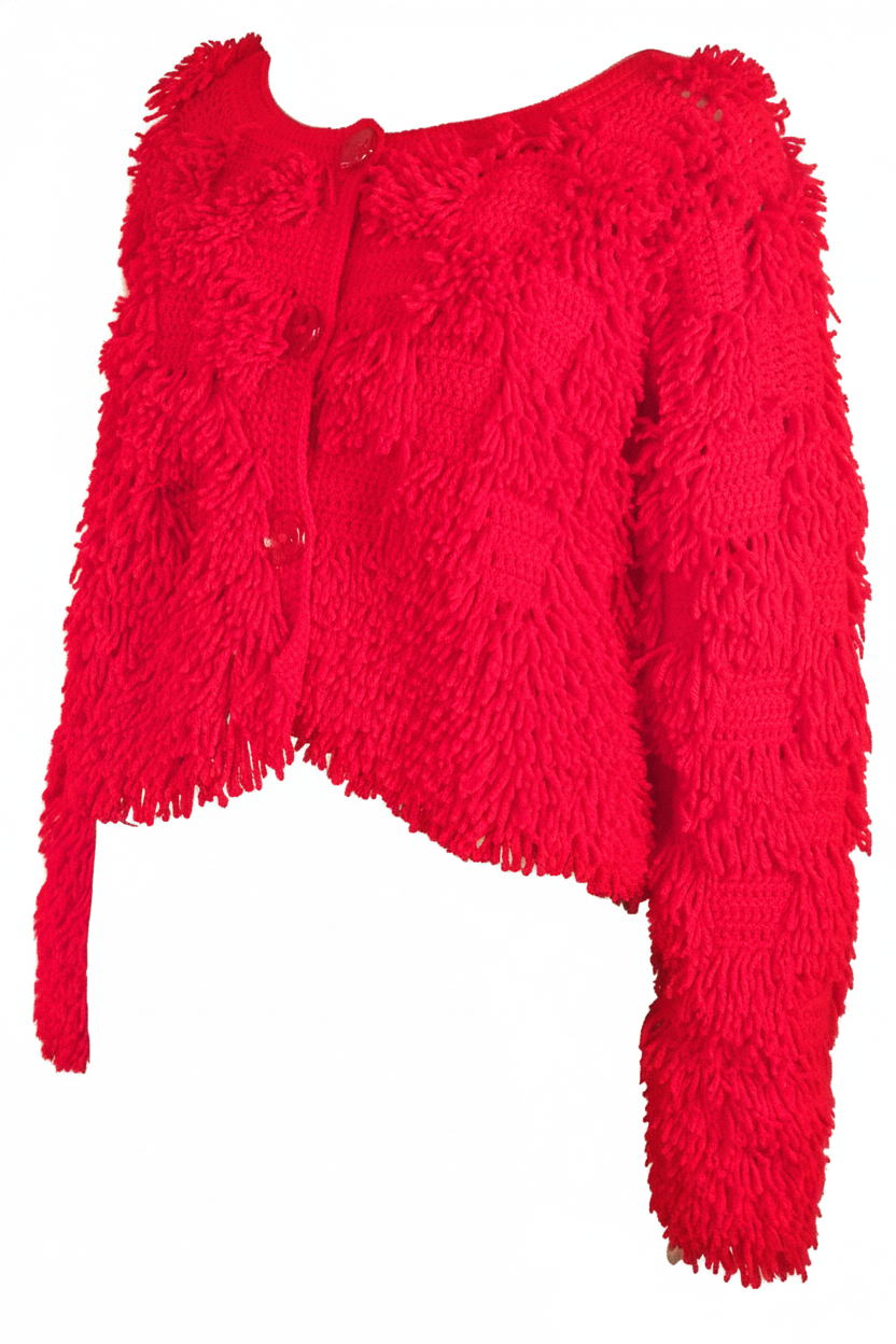 Gilet court rouge réalisé au crochet entièrement à la main et des jours de travail.