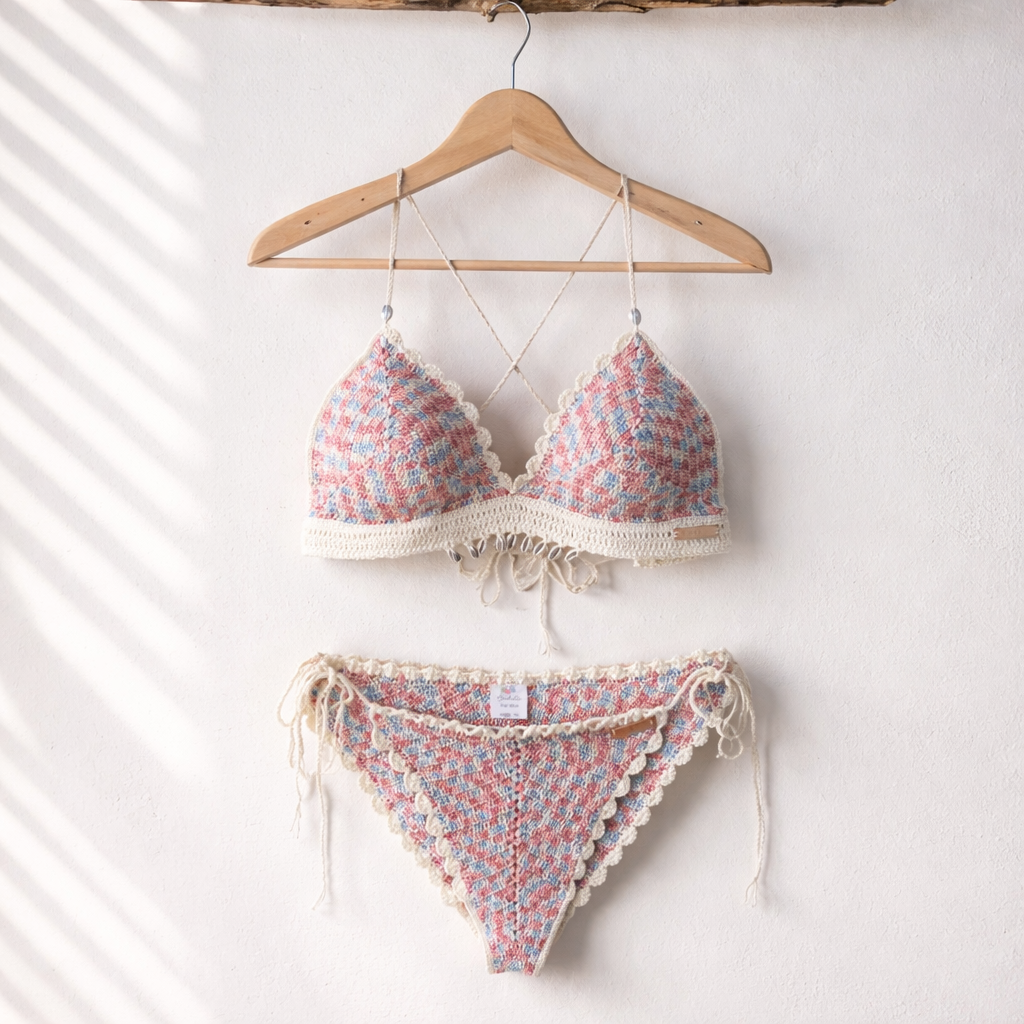 Ses nuances rosées et bleutée rappellent les reflets de l'océan,tandis que ses finitions écrues apportent une touche chic et intemporel.